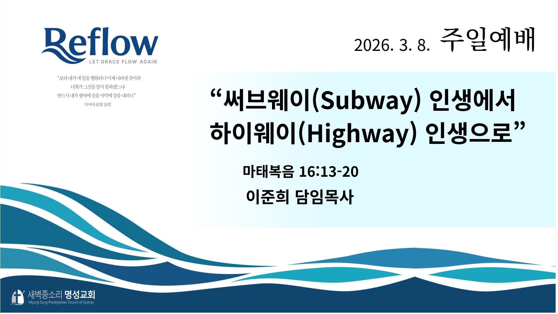 2026-03-08 “써브웨이(Subway) 인생에서 하이웨이(Highway) 인생으로”