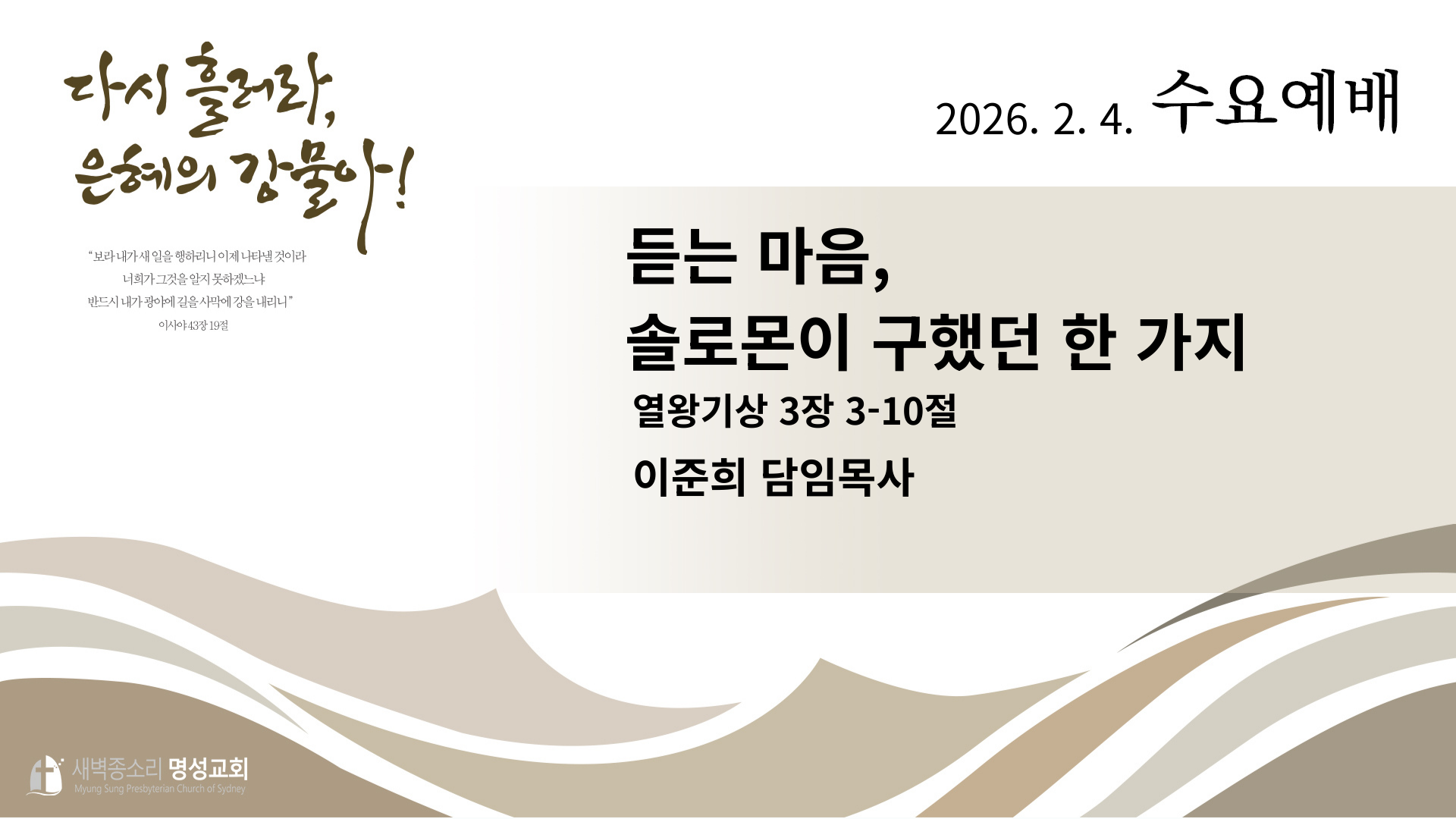 2026-02-04 수요저녁예배ㅣ“듣는 마음, 솔로몬이 구했던 한 가지"